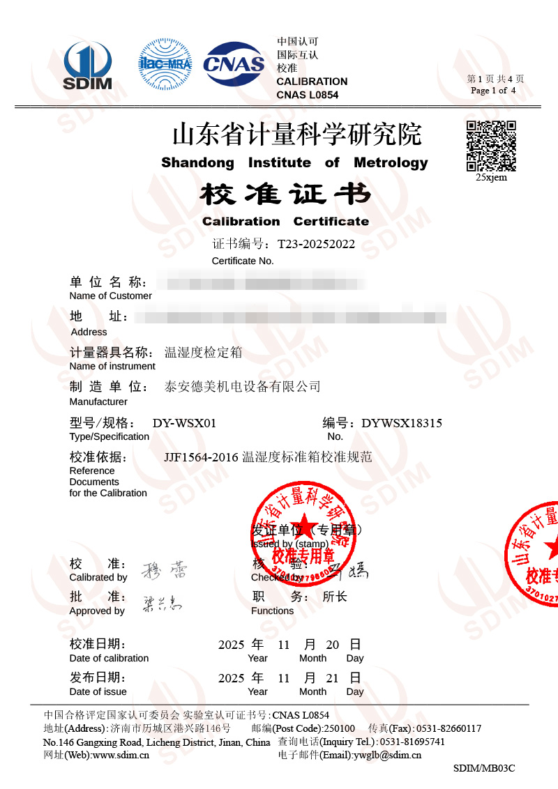 溫濕度檢定箱校準(zhǔn)證書 2025-11-25 本文被閱讀 2105 次