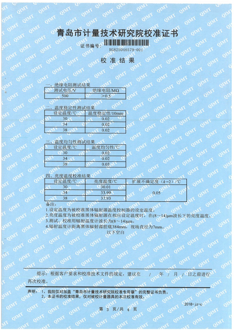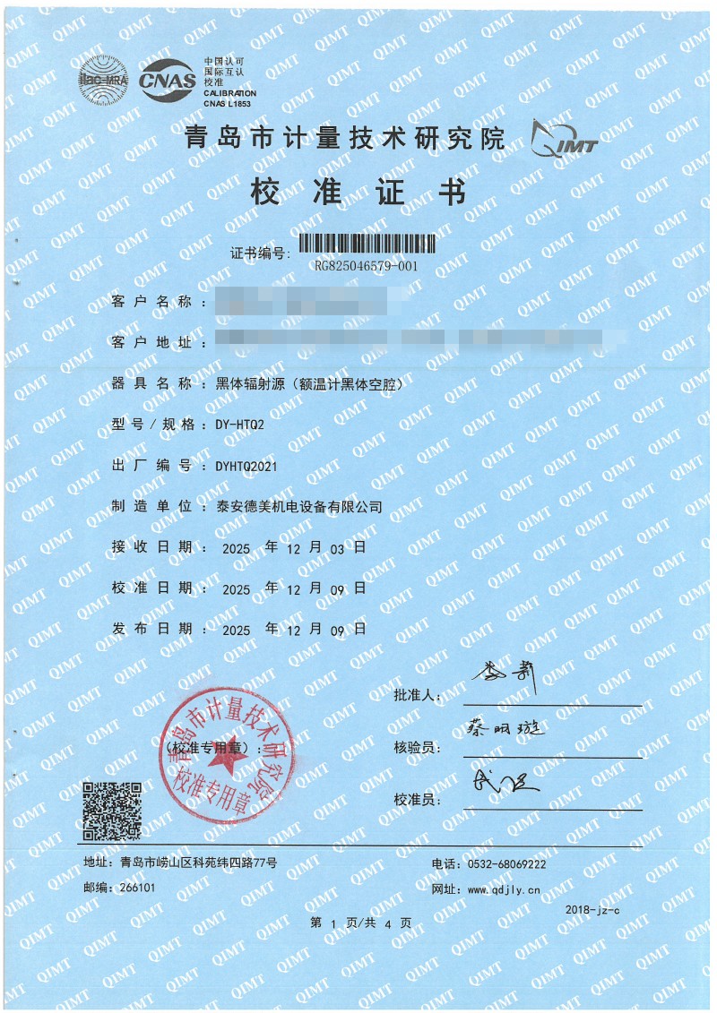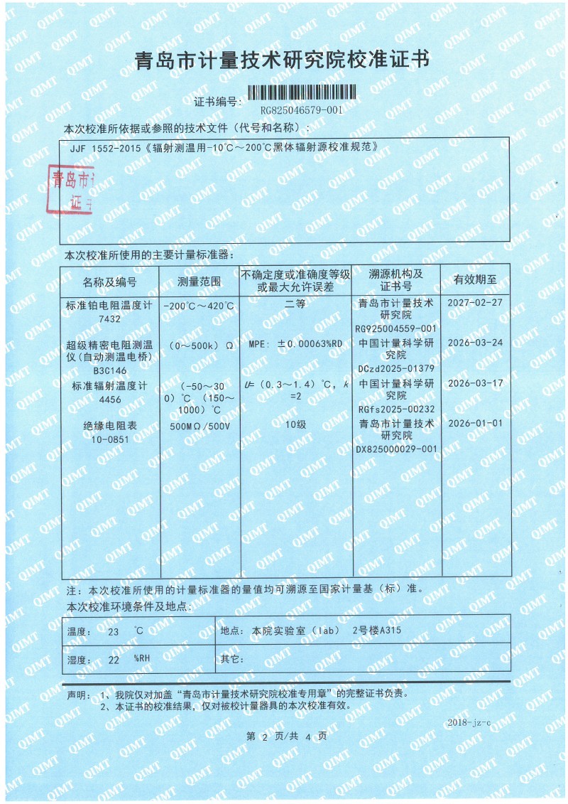 額溫計黑體空腔校準證書 2025-12-18 本文被閱讀 1722 次