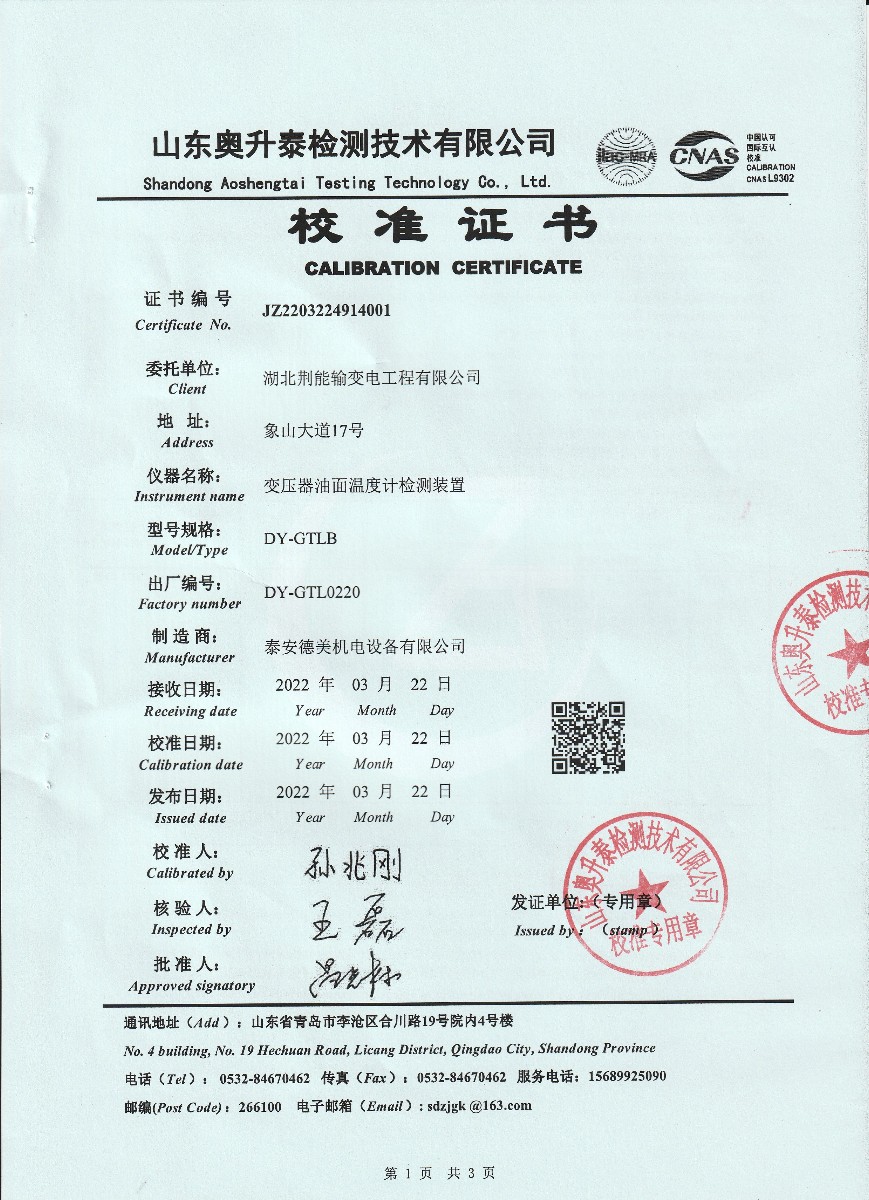 湖北荊能輸變電工程有限公司-變壓器油面溫度計檢測裝置 2022-3-28 本文被閱讀 17402 次