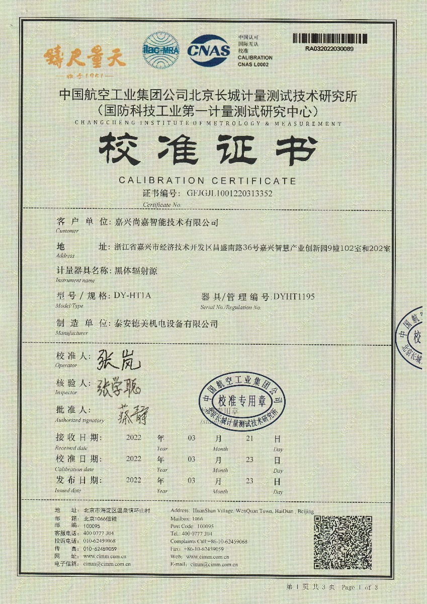 嘉興尚嘉智能技術(shù)有限公司-黑體輻射源(DY-HT1A) 2022-3-29 本文被閱讀 14131 次