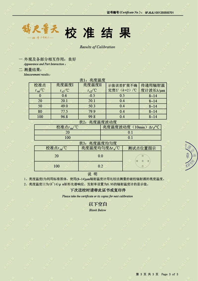 差分黑體爐(0-100℃)校準證書 2025-5-9 本文被閱讀 4559 次