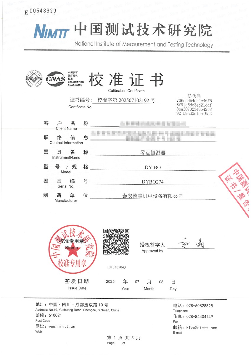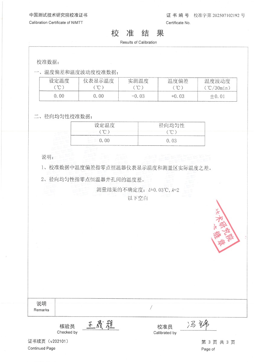 零點恒溫器校準(zhǔn)證書 2025-7-10 本文被閱讀 3871 次