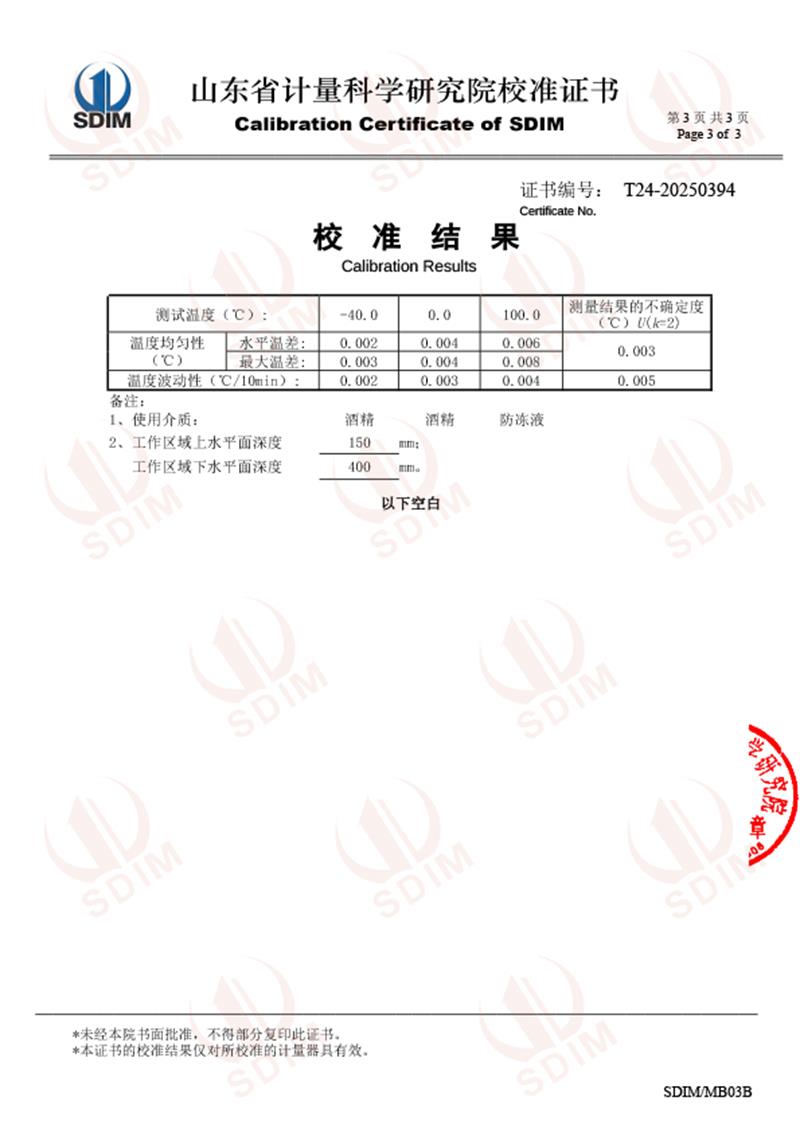 制冷恒溫槽(-40-100℃)校準(zhǔn)證書 2025-7-10 本文被閱讀 4120 次