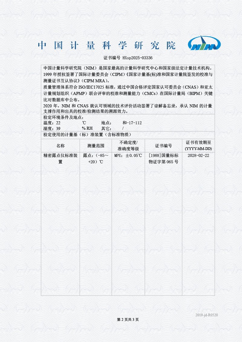 露點儀校準系統(tǒng)校準證書 2026-1-4 本文被閱讀 1708 次