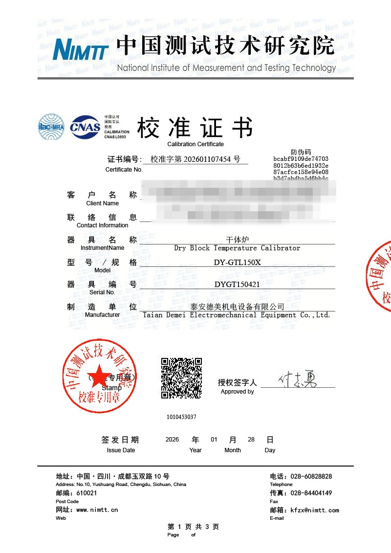 低溫干體爐-校準證書 2026-1-29 本文被閱讀 1217 次