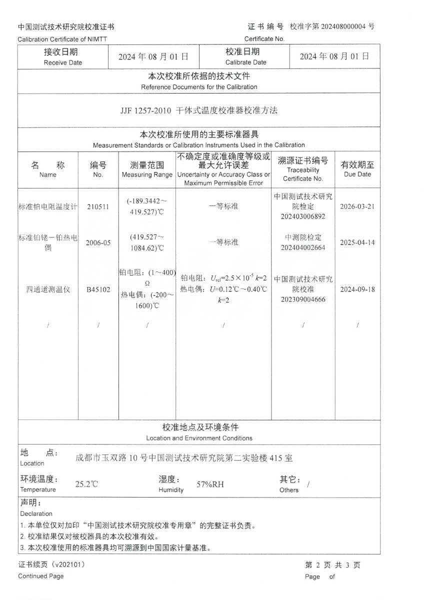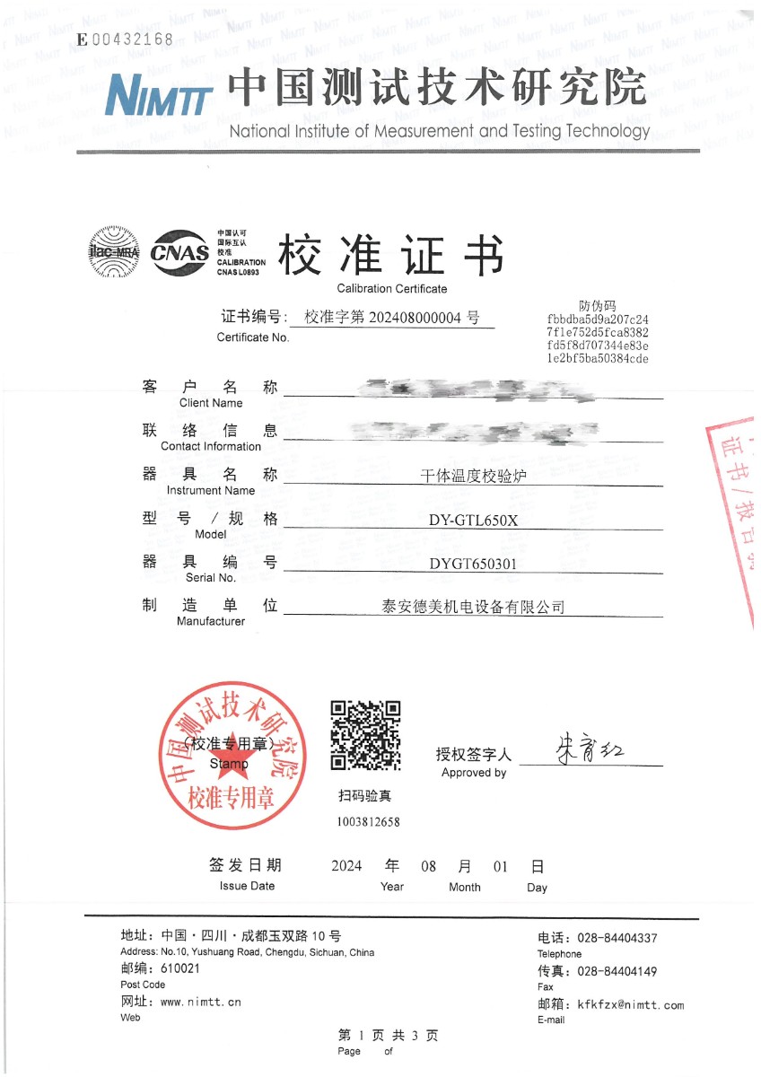 干體爐301(室溫+5℃~650℃)校準證書 2024-8-5 本文被閱讀 8099 次