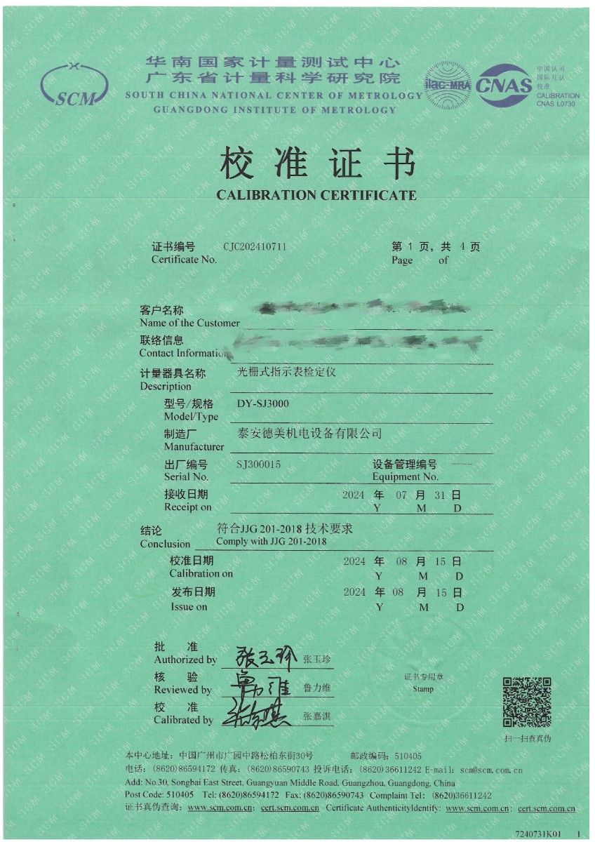 光柵式指示表檢定儀校準(zhǔn)證書 2024-8-22 本文被閱讀 7926 次