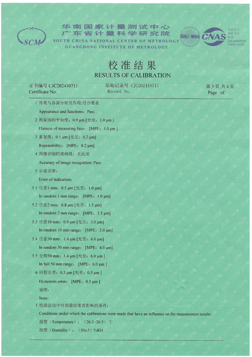 光柵式指示表檢定儀校準(zhǔn)證書
