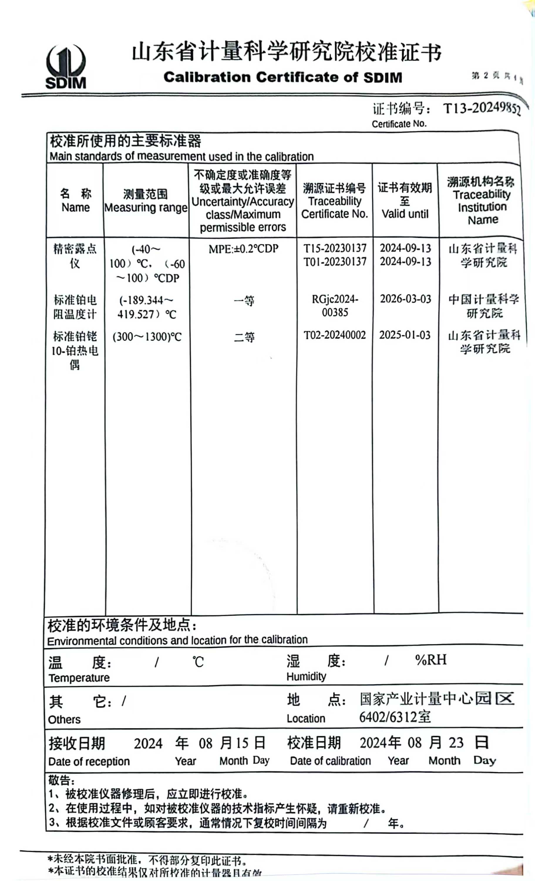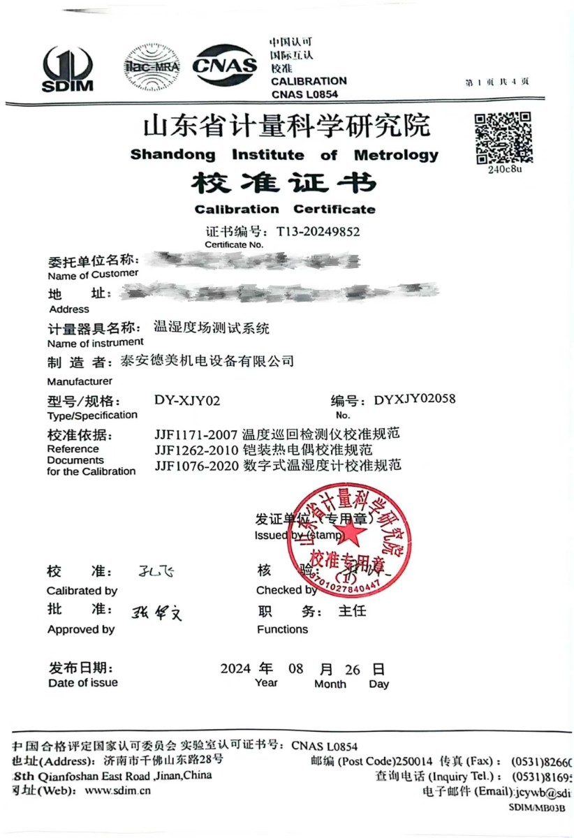 溫濕度場測試系統(tǒng)校準證書 2024-8-29 本文被閱讀 8031 次