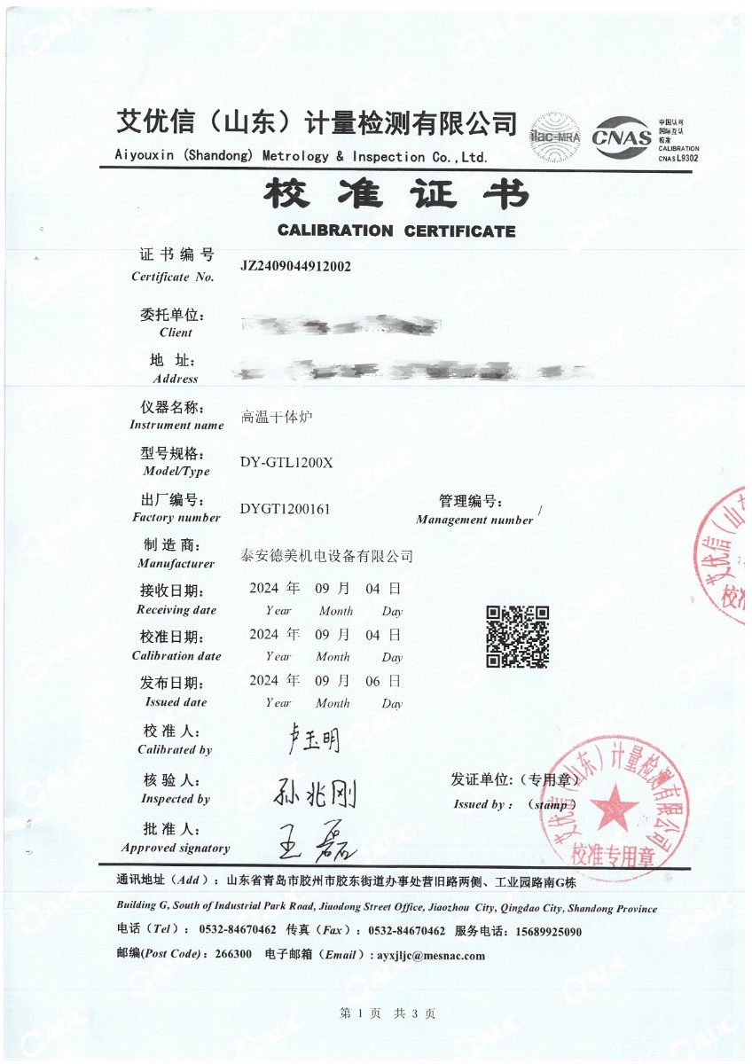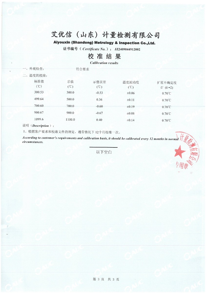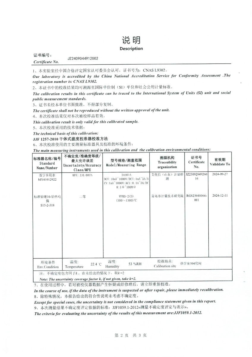 高溫干體(300~1200℃)校準(zhǔn)證書 2024-9-18 本文被閱讀 7165 次
