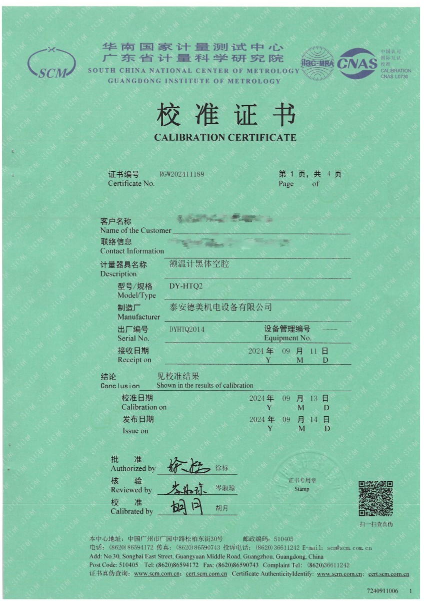 | 上一條:體溫計(jì)專(zhuān)用黑體恒溫槽(-20~100℃)校準(zhǔn)證書(shū) | 下一條:廉金屬熱電偶檢定爐-校準(zhǔn)證書(shū) |
