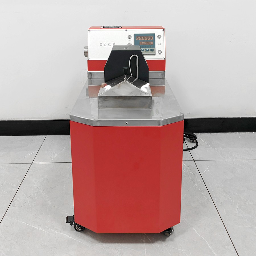 產(chǎn)品采用先進的自動控制系統(tǒng),界面友好,操作方便,控制精度高。主要是由加熱系統(tǒng)、控溫系統(tǒng)、攪拌系統(tǒng)所組成。槽體分混合區(qū)與工作區(qū)。在混合區(qū)內(nèi)由加熱器產(chǎn)生的熱量使槽內(nèi)固態(tài)鹽(介質(zhì))升溫熔化成鹽液,當鹽液溫度上升到接近設定溫度時,控溫系統(tǒng)根據(jù)感溫器測得的溫度來控制加熱器工作,再經(jīng)過攪拌系統(tǒng)的強烈攪拌充分均勻后的鹽液(介質(zhì))送入少受外界干擾的工作區(qū)。從而得到一個溫度穩(wěn)定溫場均勻的液體空間。