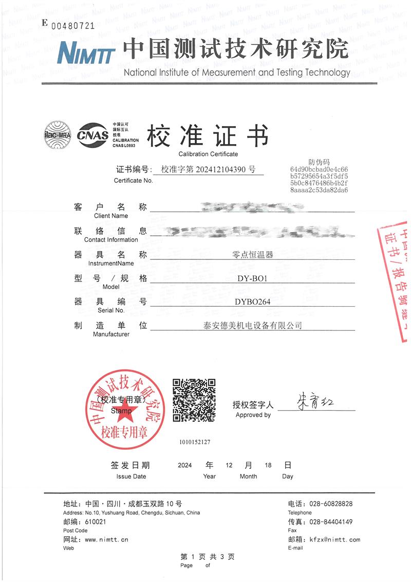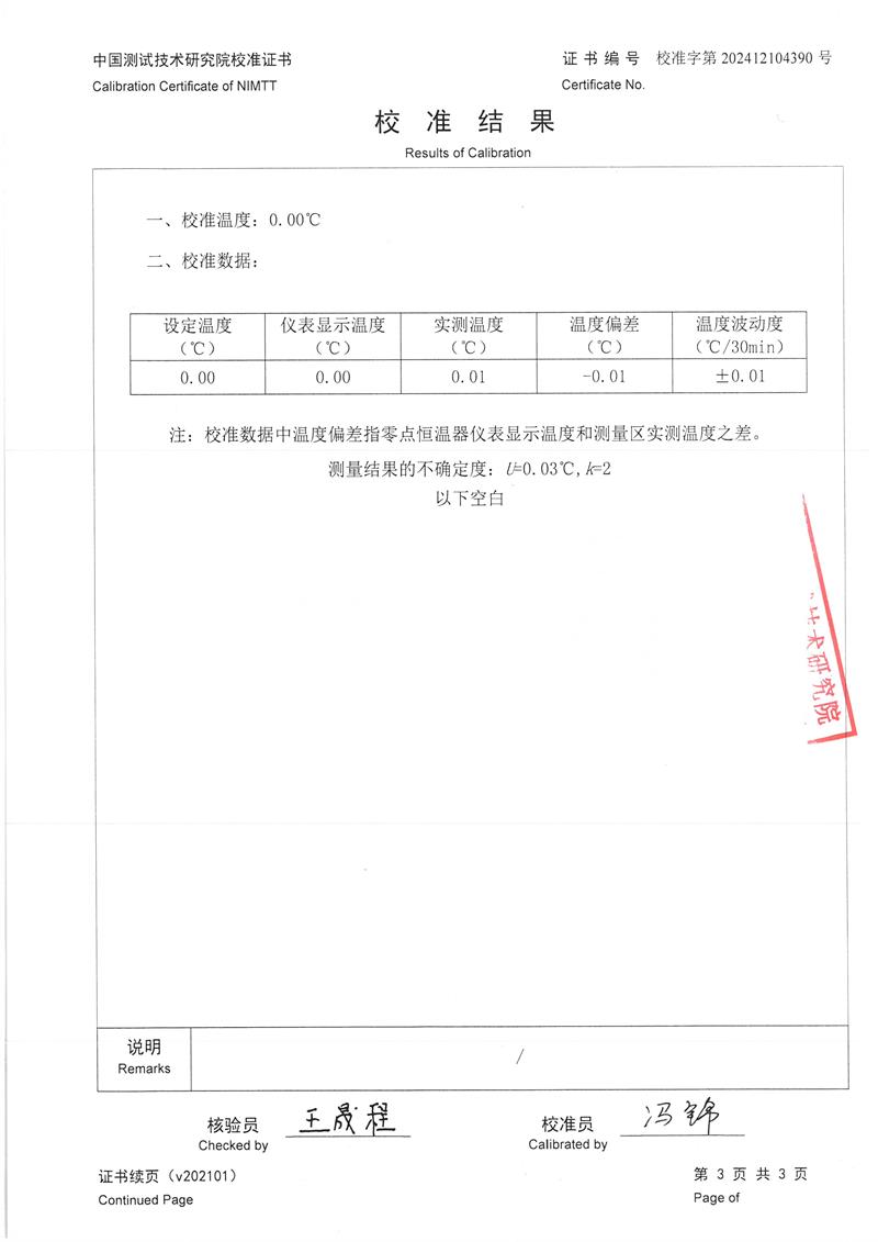 | 上一條:低溫浴式面源黑體爐(-50-80℃)校準(zhǔn)證書 | 下一條:廉金屬熱電偶檢定爐-校準(zhǔn)證書 |