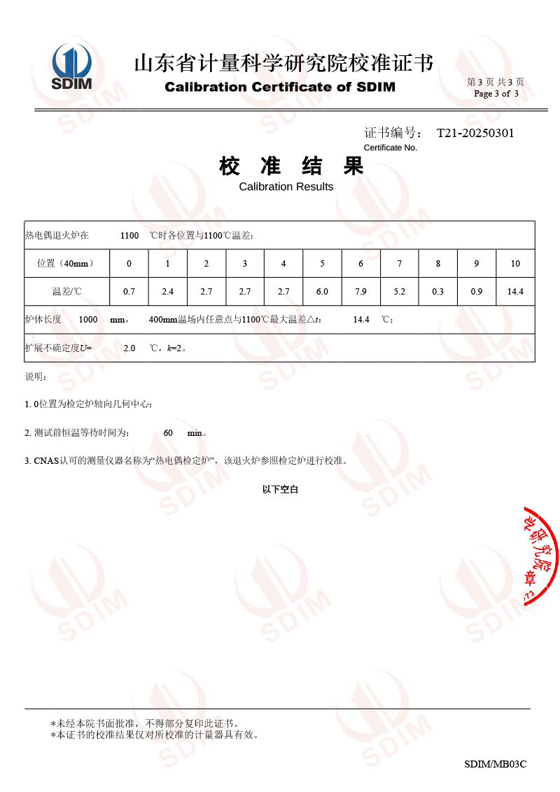熱電偶退火爐校準證書 2025-12-4 本文被閱讀 1546 次