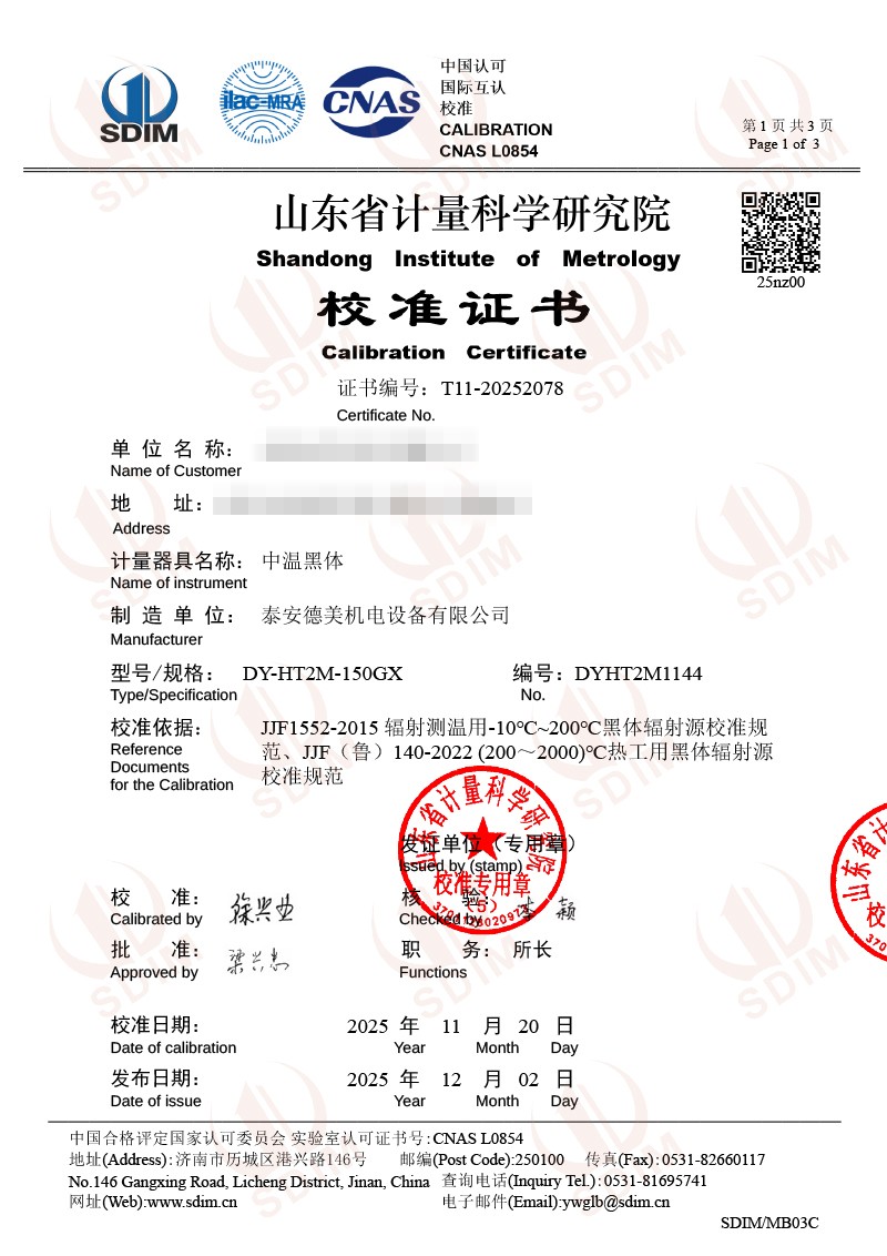 中溫黑體校準(zhǔn)證書 2025-12-4 本文被閱讀 1680 次