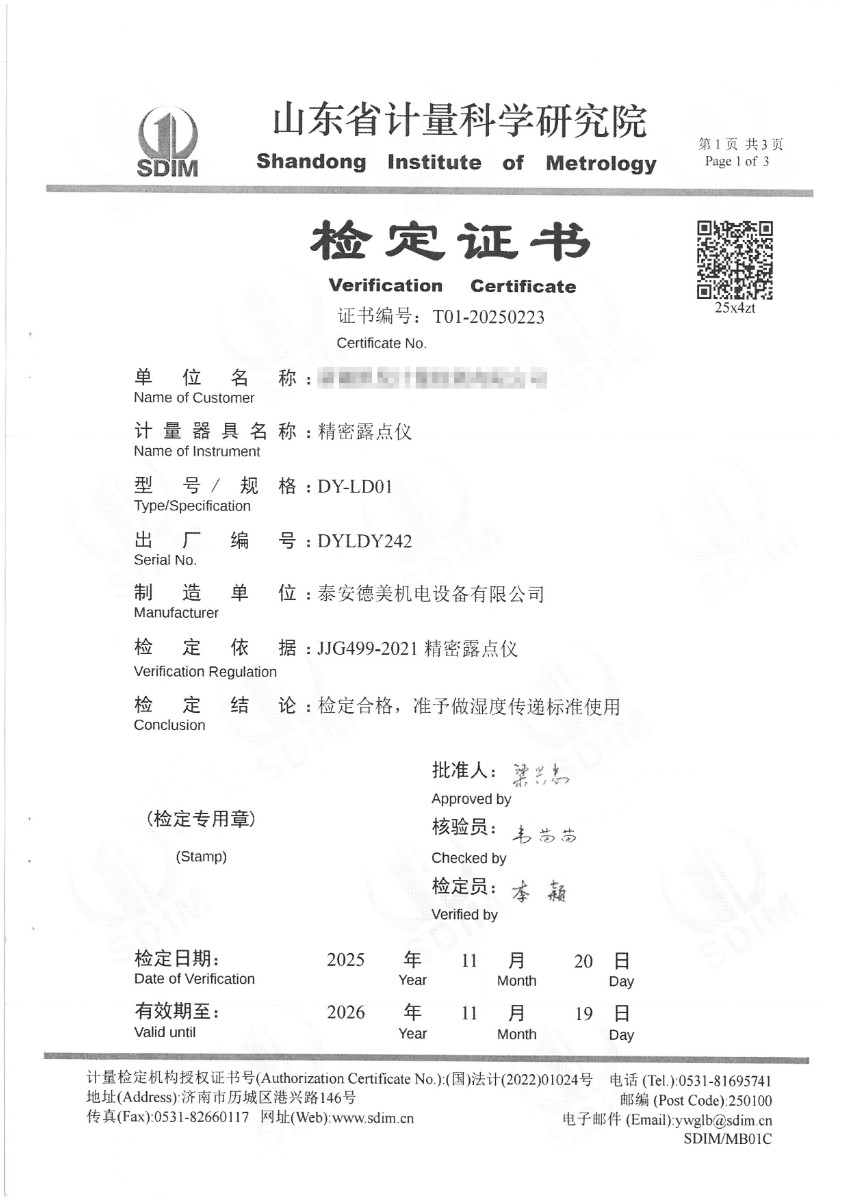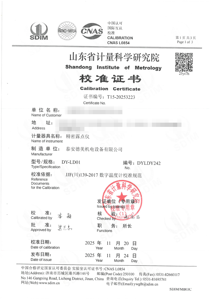 露點(diǎn)儀檢定、校準(zhǔn)證書 2025-12-4 本文被閱讀 1955 次