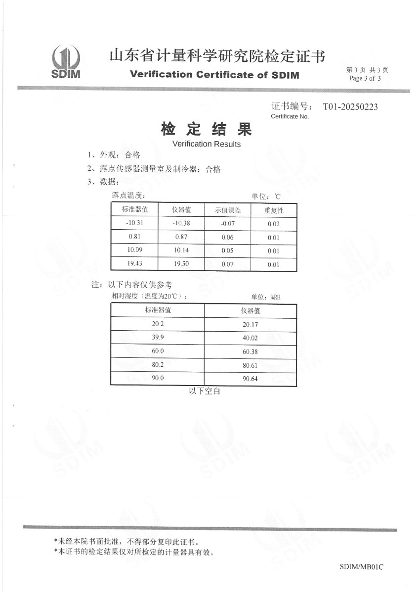 露點(diǎn)儀檢定、校準(zhǔn)證書