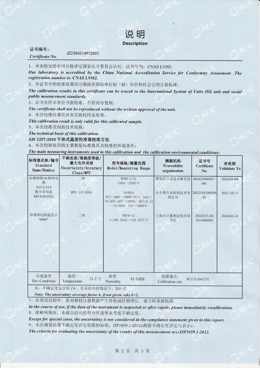 | 上一條:廣東省順邦計量檢測科技有限公司 冷鏡式露點(diǎn)儀(溫度) 校準(zhǔn)證書 | 下一條:廉金屬熱電偶檢定爐-校準(zhǔn)證書 |