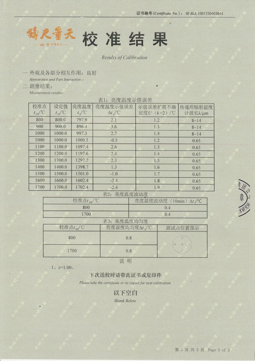 | 上一條:晶科能源(義烏)有限公司 溫濕度檢定箱 校準(zhǔn)證書(shū) | 下一條:廉金屬熱電偶檢定爐-校準(zhǔn)證書(shū) |