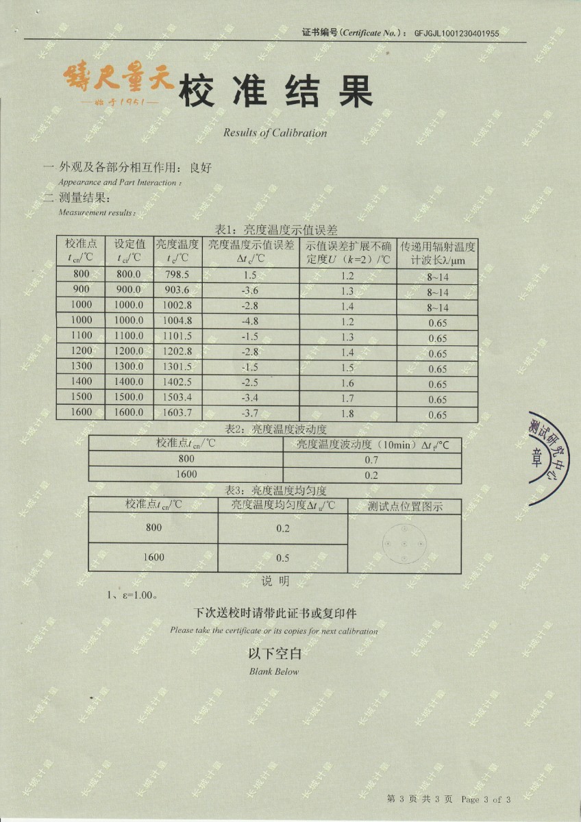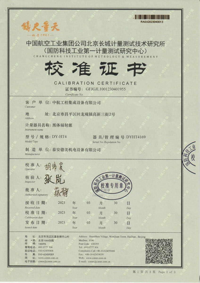 中航工程集成設備有限公司 黑體輻射源 校準證書 (1) 2023-5-4 本文被閱讀 15013 次
