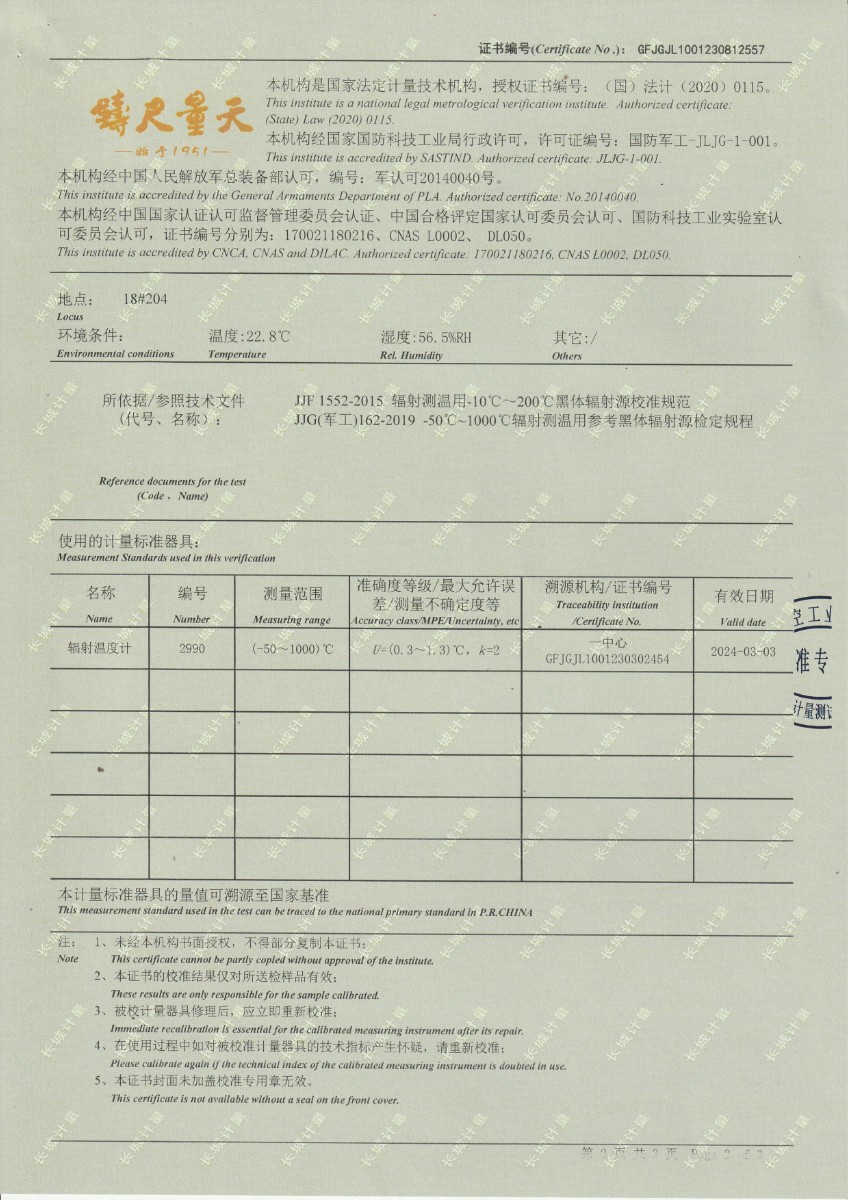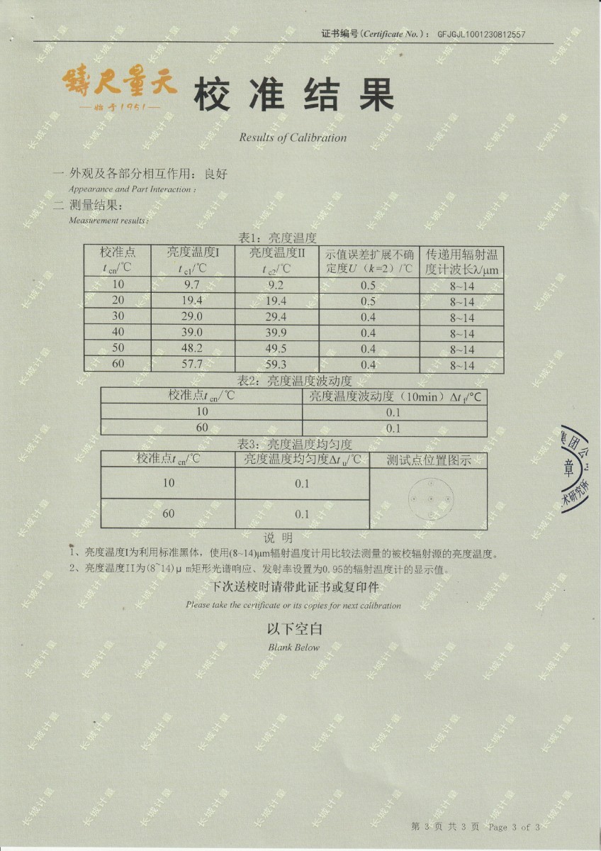 面源黑體爐DYHT1M141校準證書 2023-9-20 本文被閱讀 10054 次