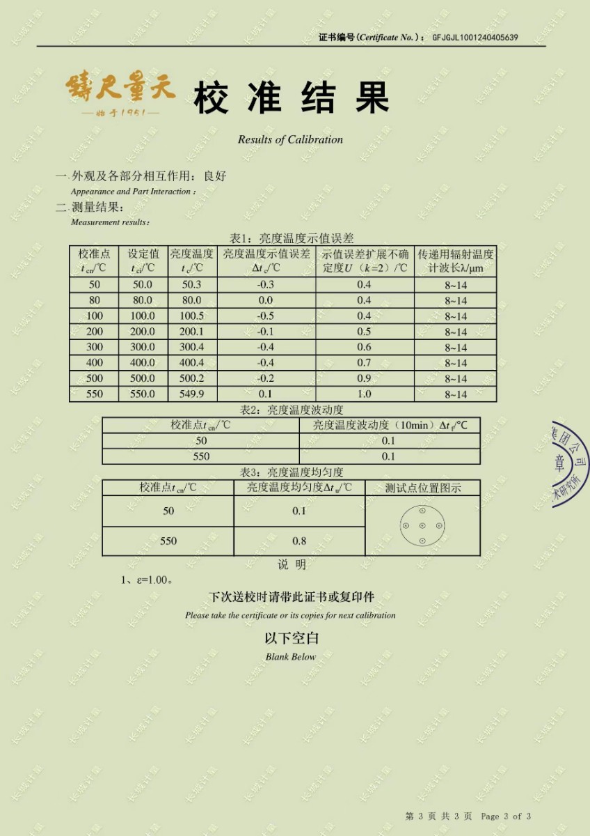 | 上一條:小尺寸高精度中溫黑體校準(zhǔn)證書(shū) | 下一條:廉金屬熱電偶檢定爐-校準(zhǔn)證書(shū) |