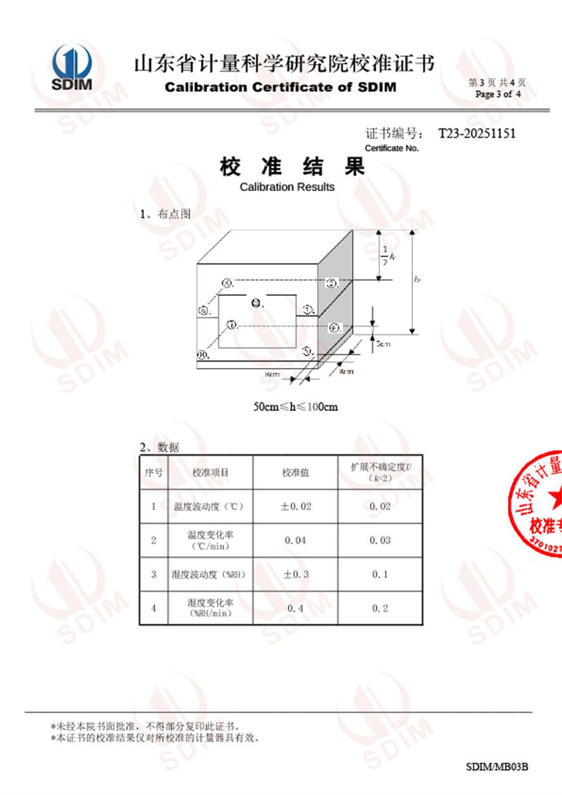 溫濕度檢定箱(-5-65℃)校準(zhǔn)證書 2025-6-13 本文被閱讀 4307 次