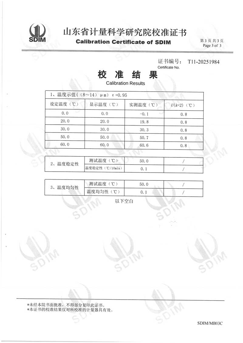 黑體輻射源(0-60°C)校準(zhǔn)證書(shū)