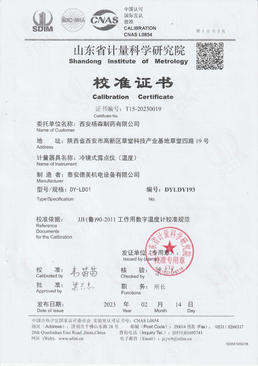 | 上一條:西安楊森制藥有限公司 冷鏡式露點(diǎn)儀 檢定證書 | 下一條:廉金屬熱電偶檢定爐-校準(zhǔn)證書 |