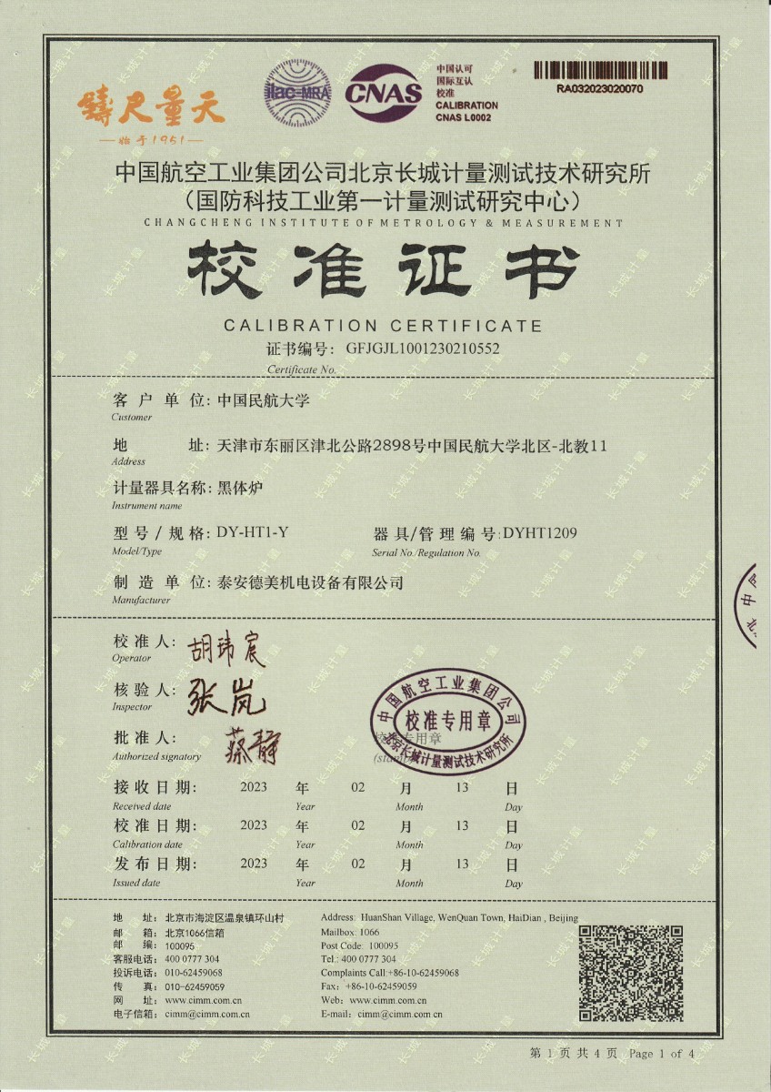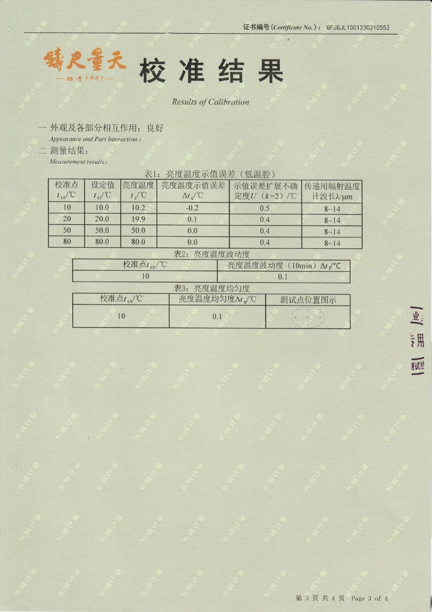 | 上一條:煙臺信泰檢測技術(shù)服務(wù)有限公司 黑體爐 校準(zhǔn)證書 | 下一條:廉金屬熱電偶檢定爐-校準(zhǔn)證書 |