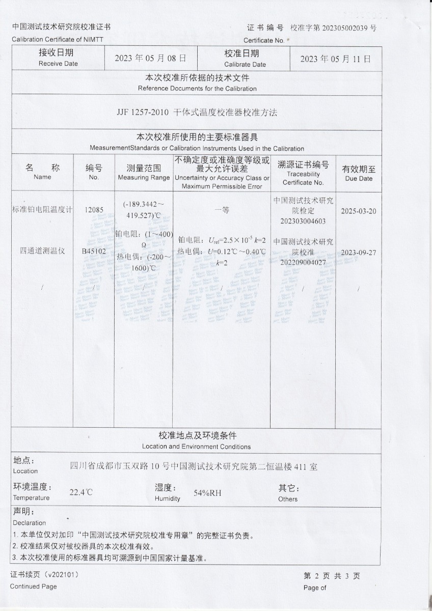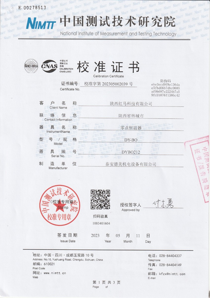 陜西紅馬科技有限公司 零點恒溫器 校準證書 2023-5-18 本文被閱讀 11436 次