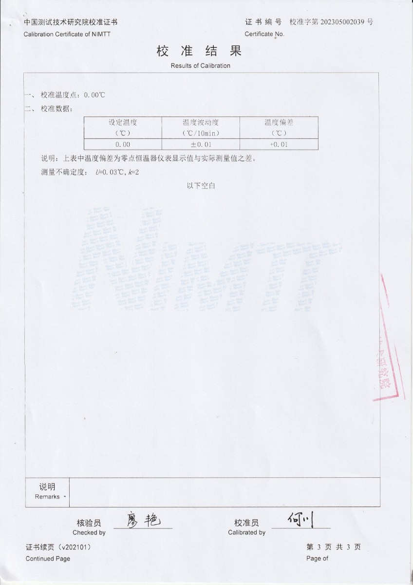 陜西紅馬科技有限公司 零點恒溫器 校準證書
