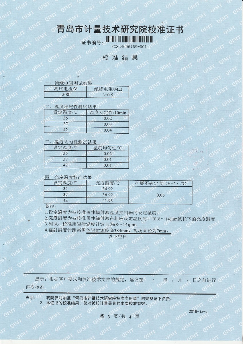 額溫計(jì)黑體空腔校準(zhǔn)證書