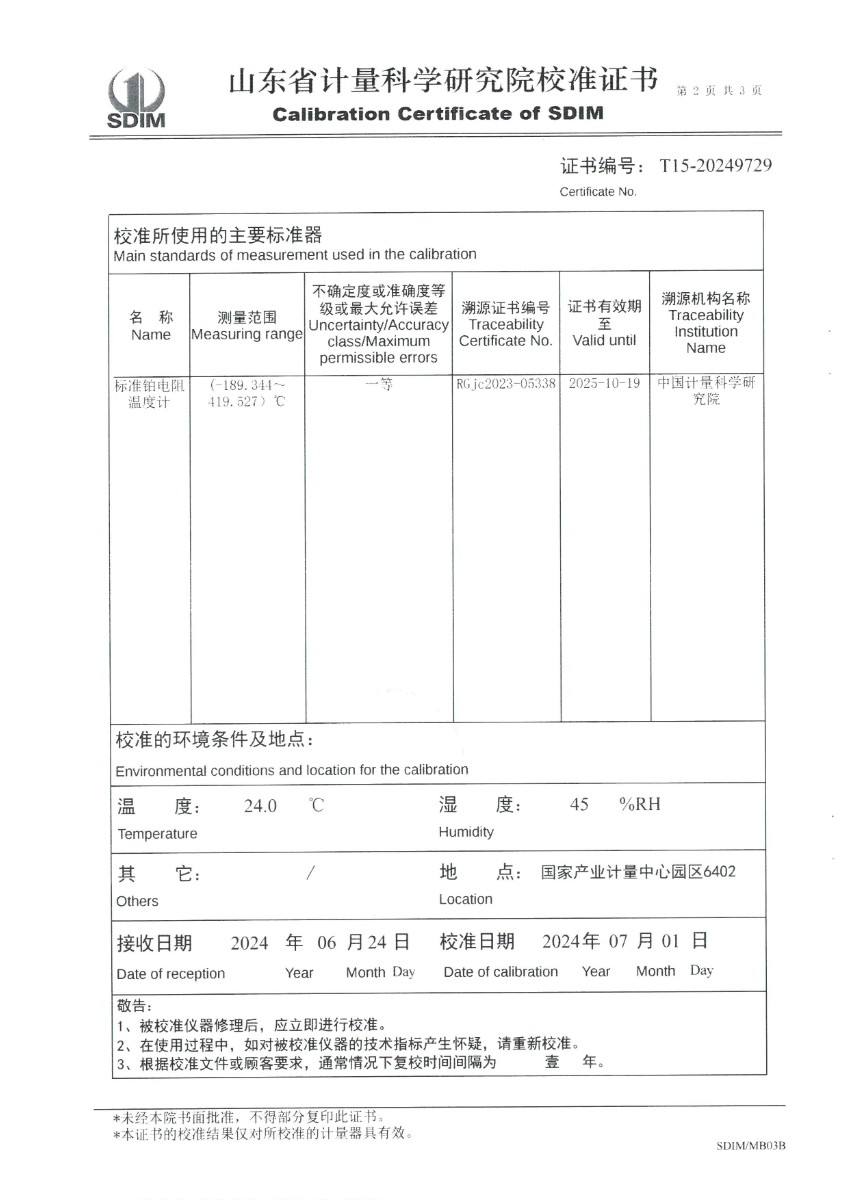 高精度數(shù)字溫度計(30~150℃)校準證書 2024-7-5 本文被閱讀 6553 次