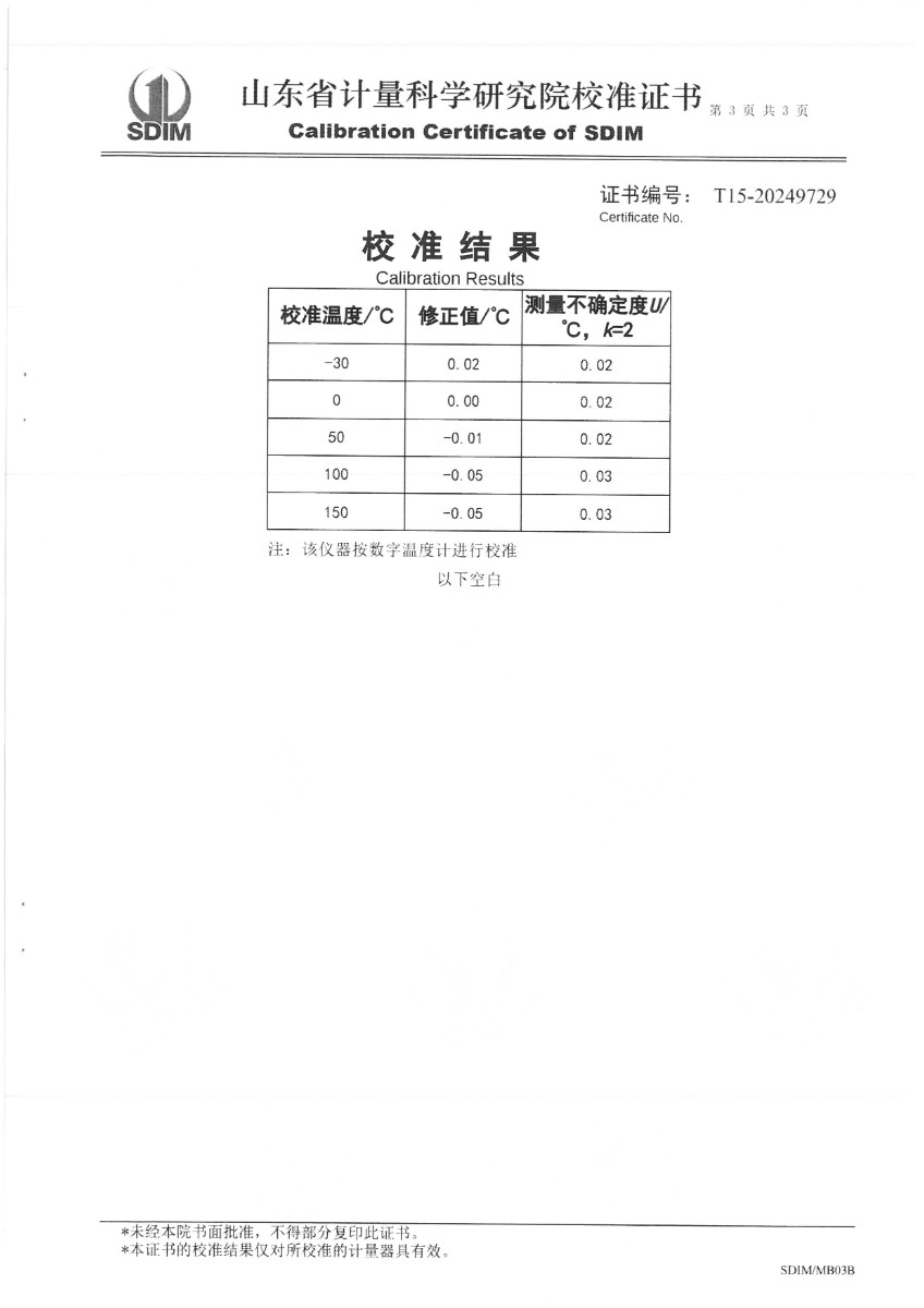 高精度數(shù)字溫度計(30~150℃)校準證書