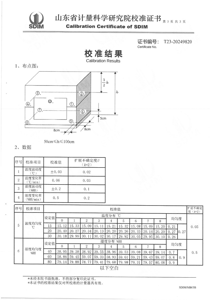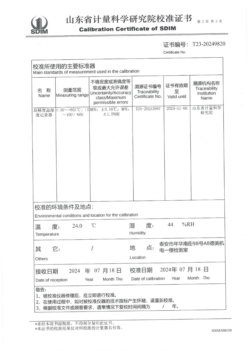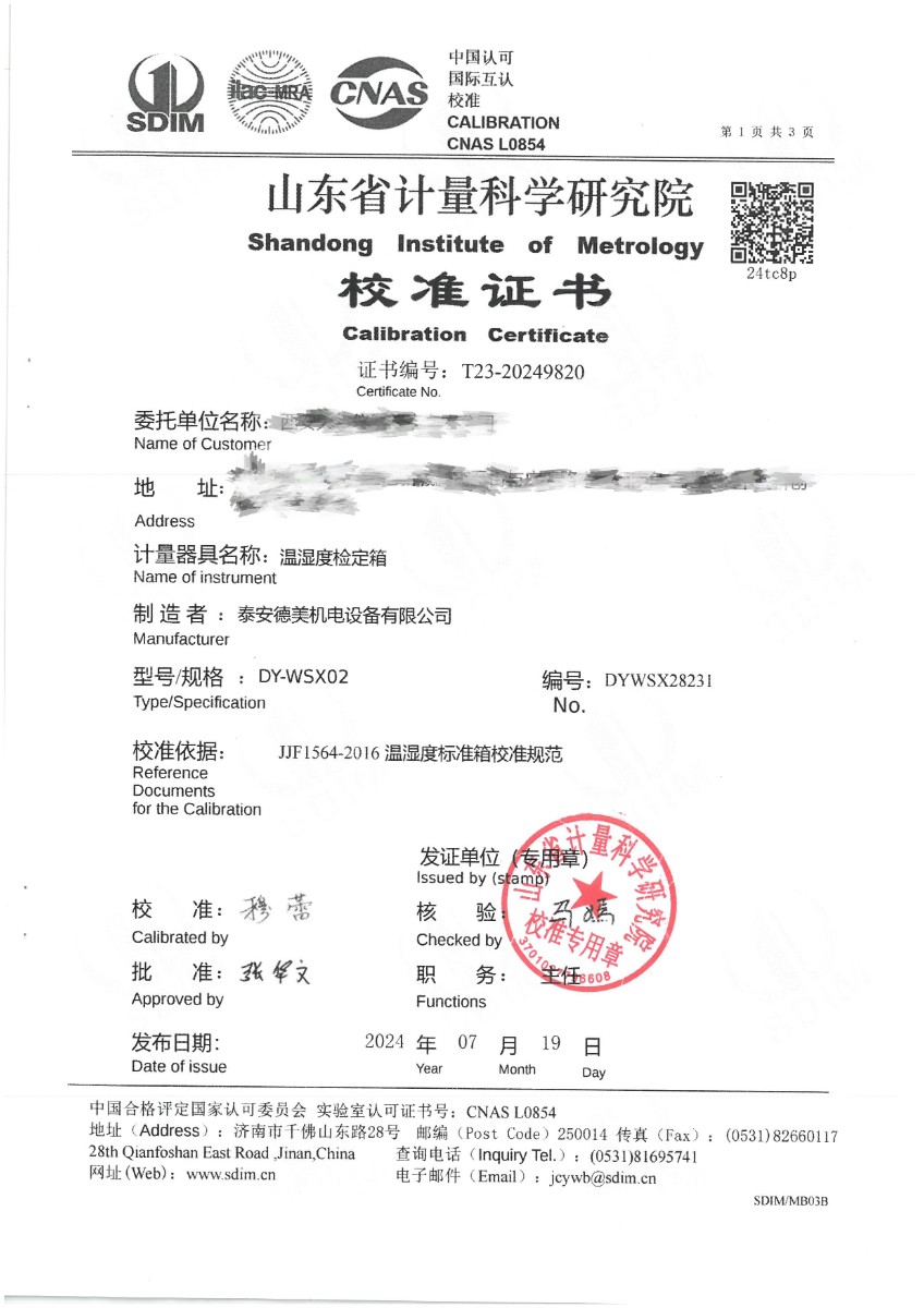 溫濕度檢定箱(-20~70℃)校準證書 2024-7-20 本文被閱讀 8564 次