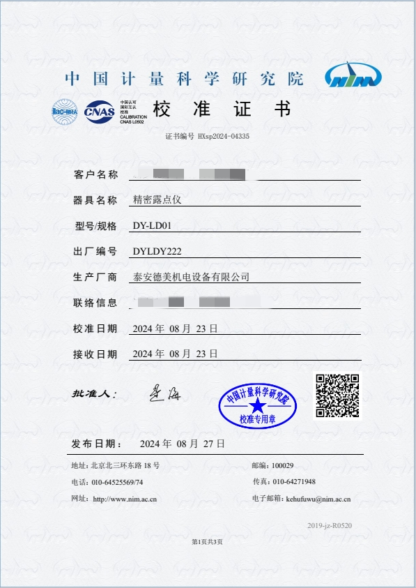 露點(diǎn)儀校準(zhǔn)證書 2024-9-3 本文被閱讀 8664 次