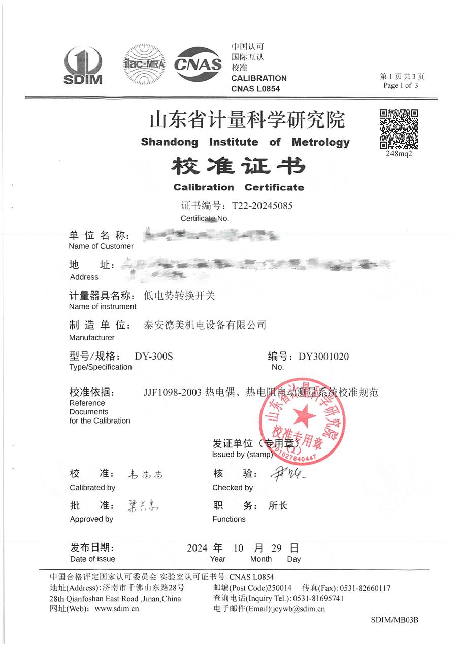 低電勢轉換開關校準證書 2024-10-31 本文被閱讀 7673 次