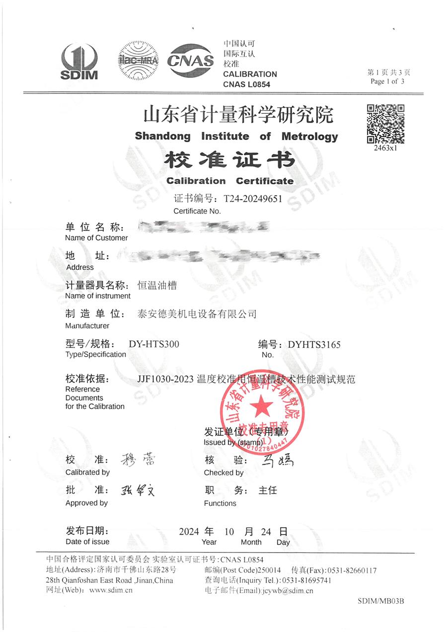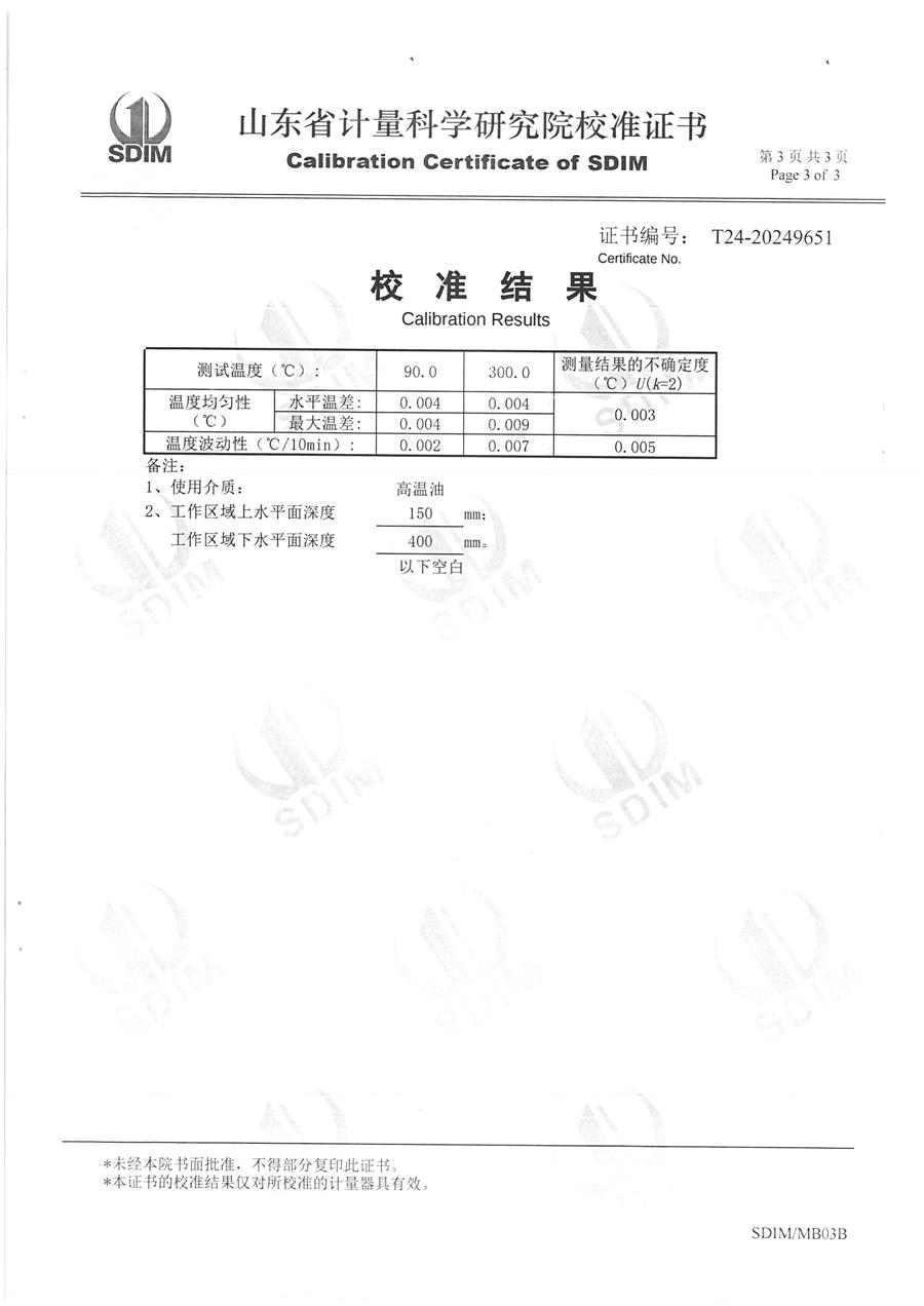 恒溫油槽(90-300℃)校準(zhǔn)證書 2024-11-2 本文被閱讀 9177 次