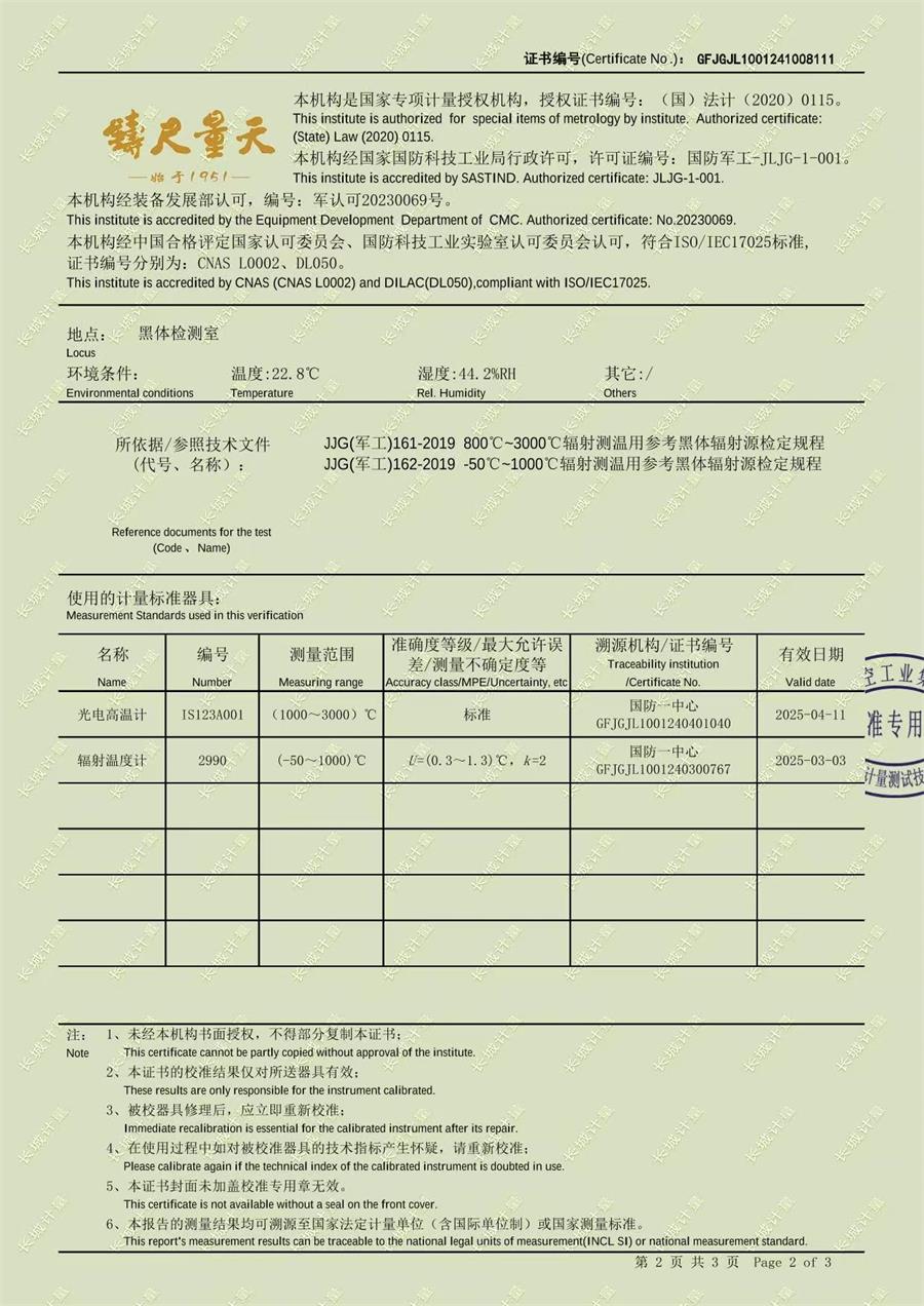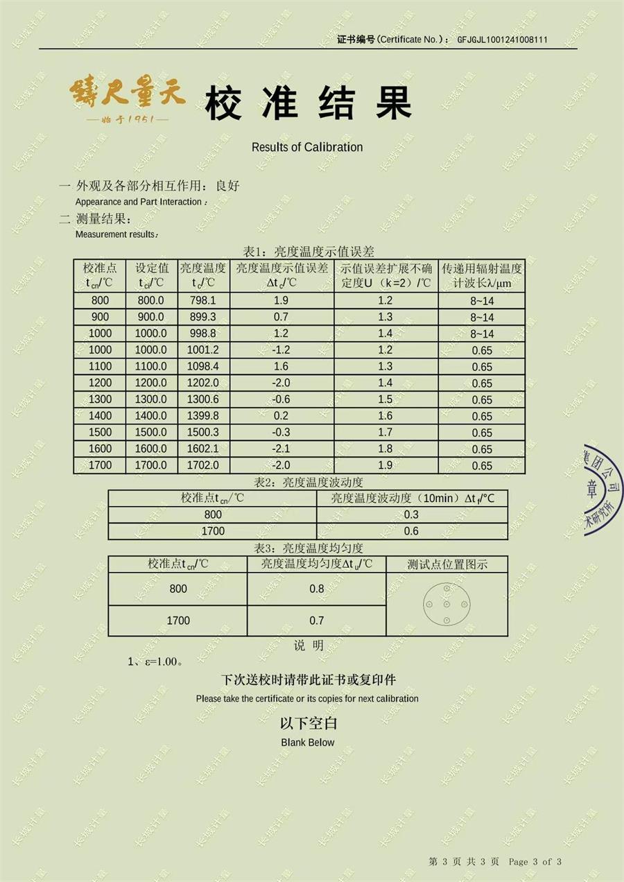 高溫黑體爐(800-1700℃)校準證書 2024-11-15 本文被閱讀 7964 次