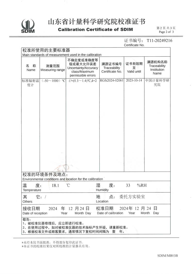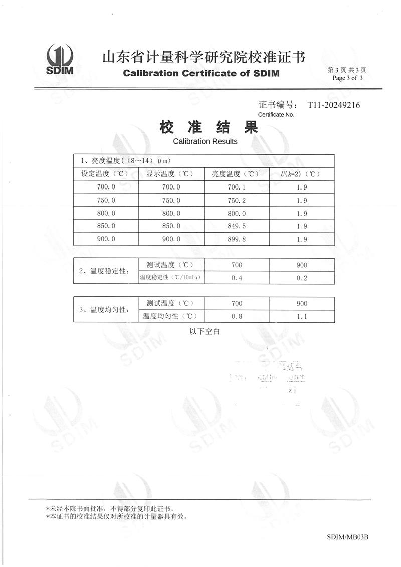 高溫黑體爐(300℃~1200℃)校準(zhǔn)證書 2025-1-25 本文被閱讀 8020 次