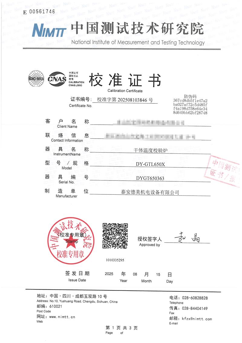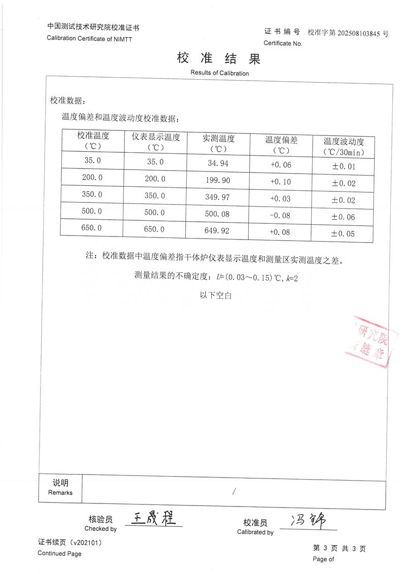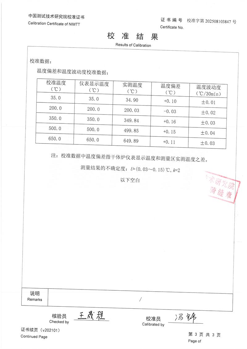 | 上一條:高精度低溫黑體(-10-100℃)校準(zhǔn)證書 | 下一條:廉金屬熱電偶檢定爐-校準(zhǔn)證書 |