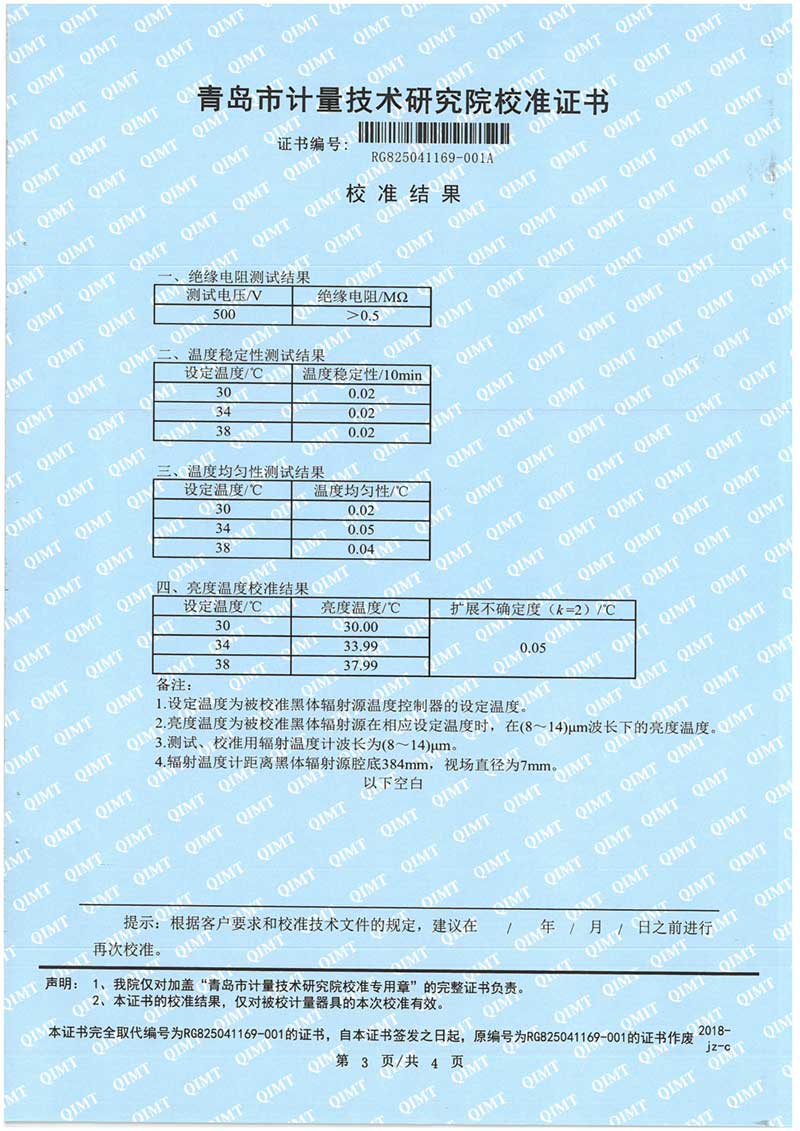 額溫計黑體空腔校準(zhǔn)證書