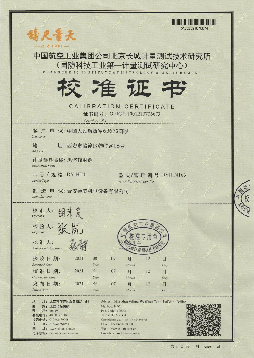 中國人民解放軍63672部隊-黑體輻射源 2021-7-23 本文被閱讀 20789 次