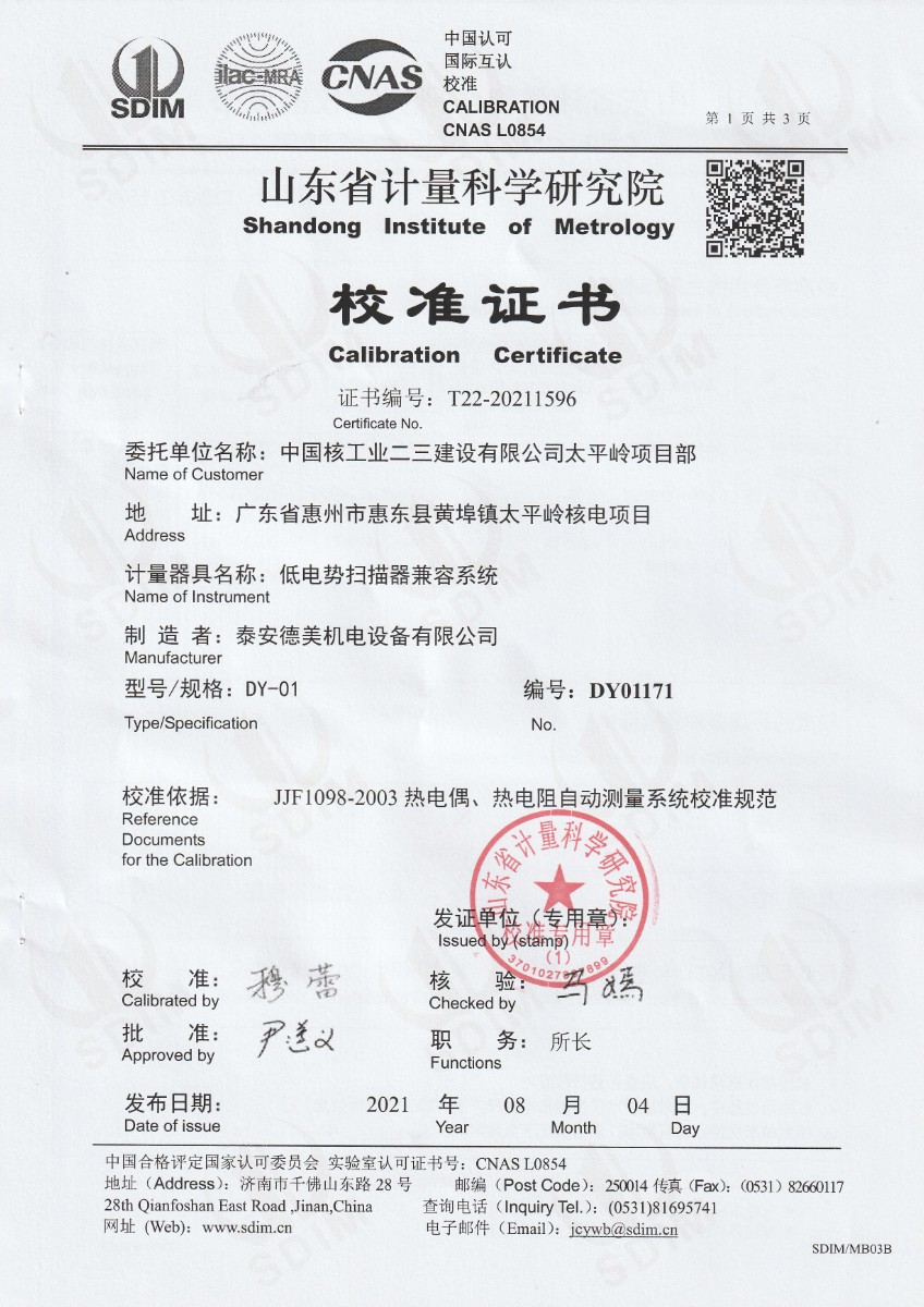 上一條:DY-HTM面源黑體爐,輻射面100mm(-20℃~600℃)下一條:廉金屬熱電偶檢定爐-校準(zhǔn)證書(shū)