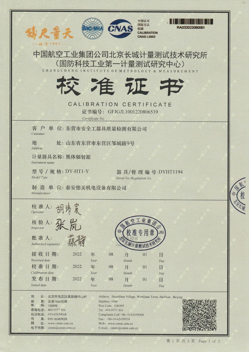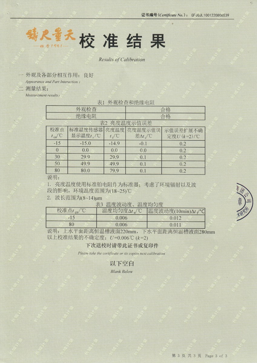 | 上一條:東營市安全工器具質(zhì)量檢測有限公司-黑體輻射源DY-HT2 | 下一條:廉金屬熱電偶檢定爐-校準(zhǔn)證書 |