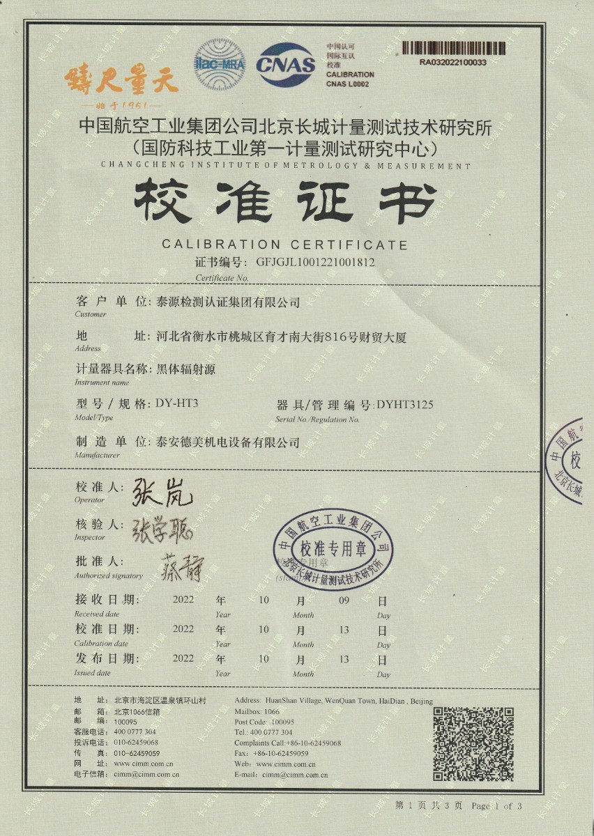 泰源檢測認證集團有限公司-黑體輻射源 2022-10-31 本文被閱讀 15297 次