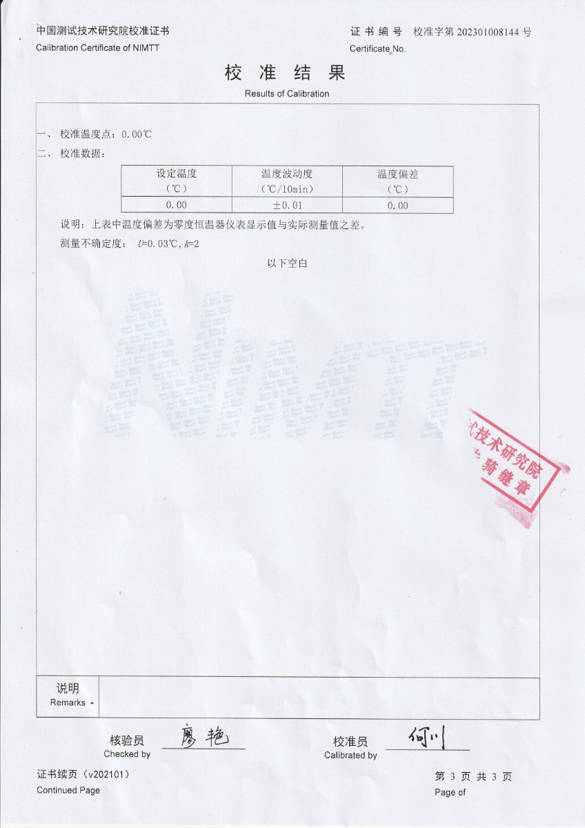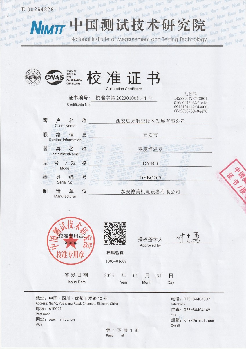 西安遠(yuǎn)方航空技術(shù)發(fā)展有限公司 零度恒溫器 校準(zhǔn)證書 2023-4-10 本文被閱讀 15771 次