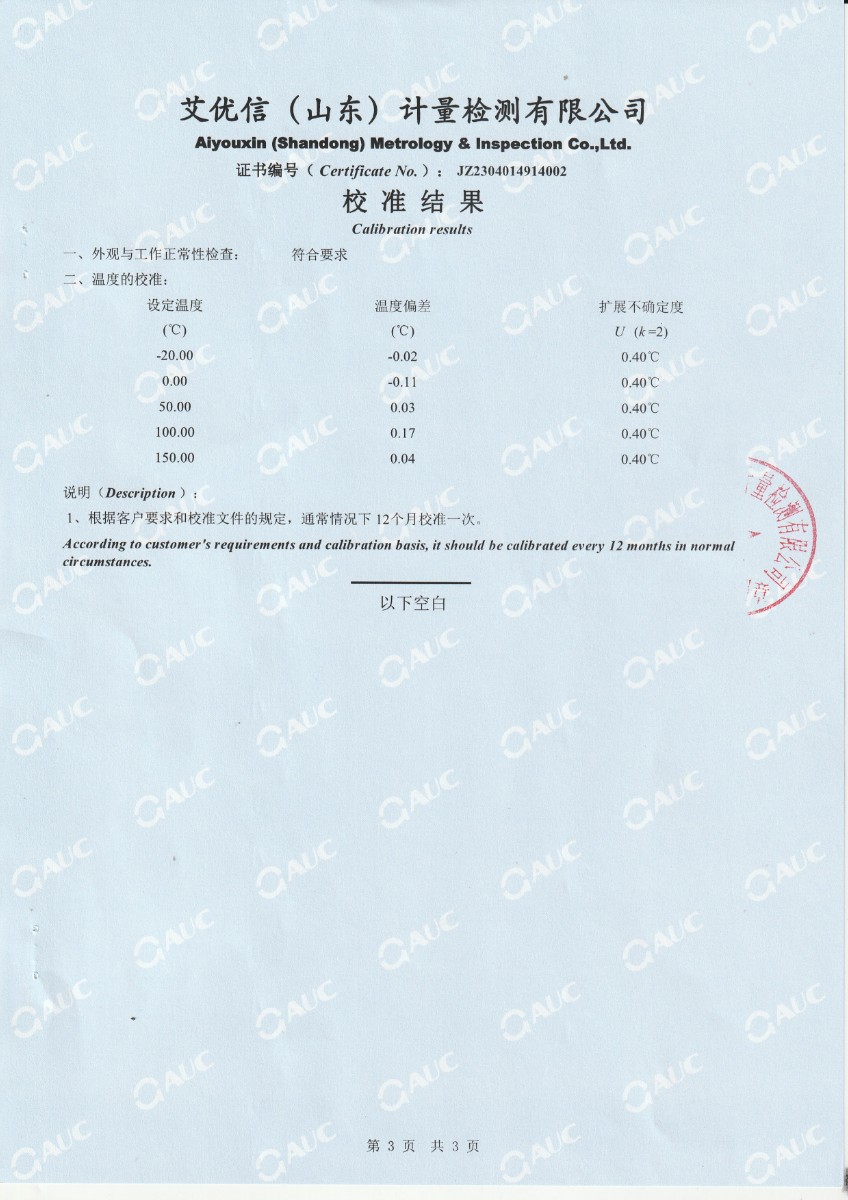| 上一條:沈陽吉地安風(fēng)電科技有限公司 干體溫度校驗(yàn)爐 校準(zhǔn)證書(1) | 下一條:廉金屬熱電偶檢定爐-校準(zhǔn)證書 |