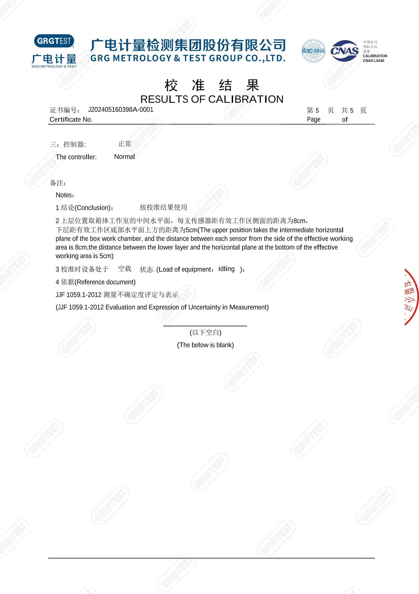 | 上一條:零點(diǎn)恒溫器(0℃±0.1℃)校準(zhǔn)證書(shū) | 下一條:廉金屬熱電偶檢定爐-校準(zhǔn)證書(shū) |